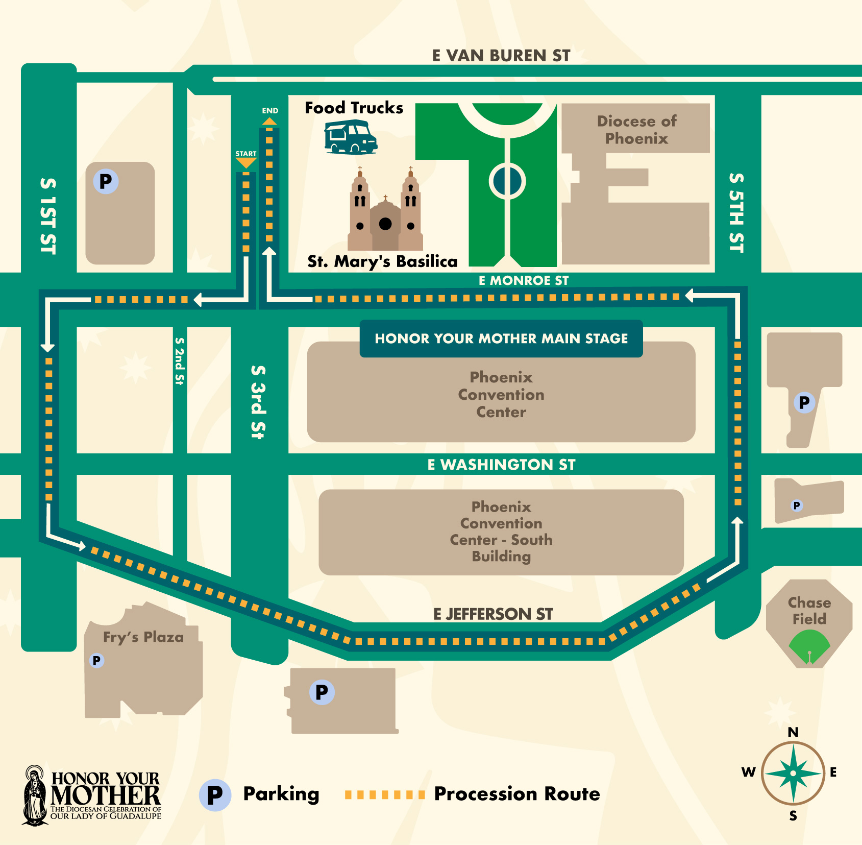 | Day 4 | December 6th | 11:00 a.m. | During Procession | Downtown Honor Your Mother |